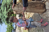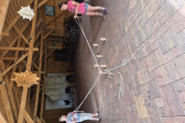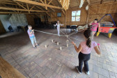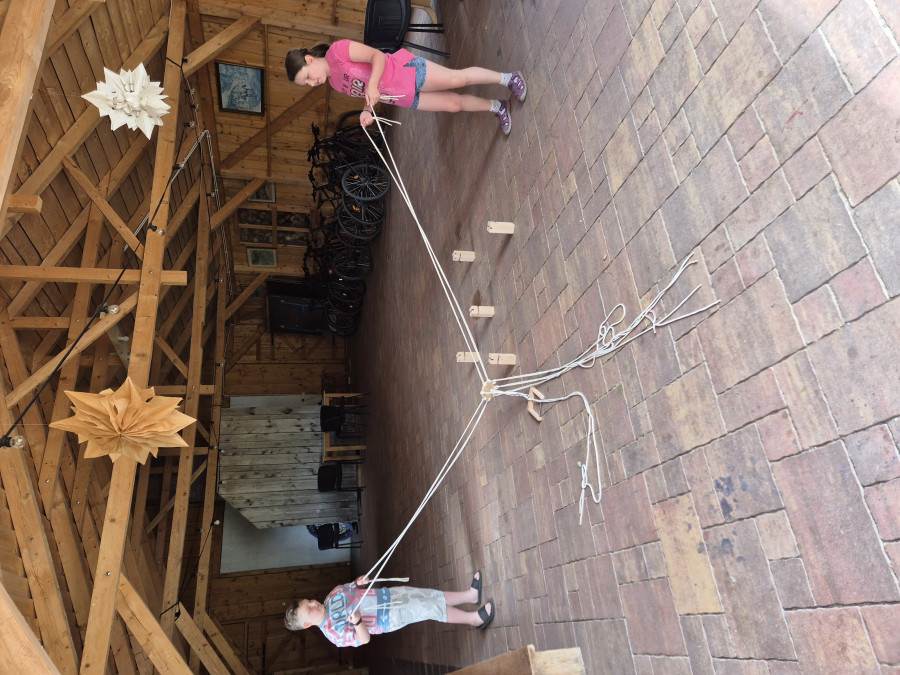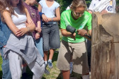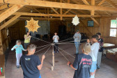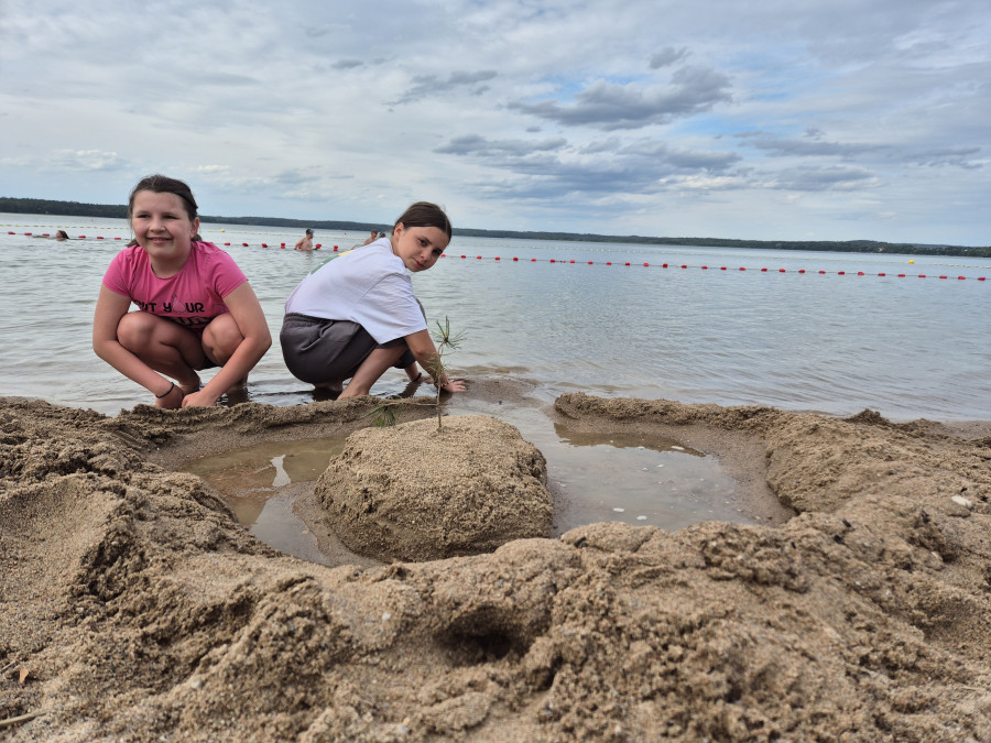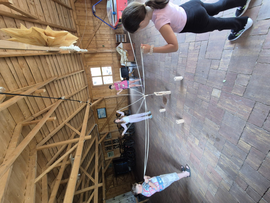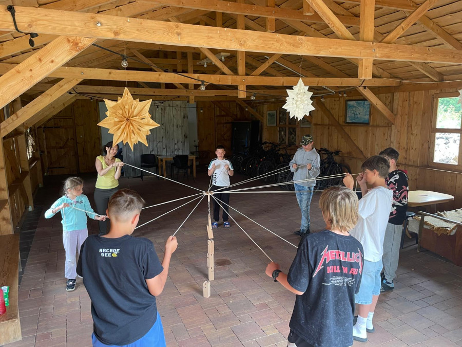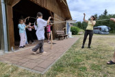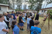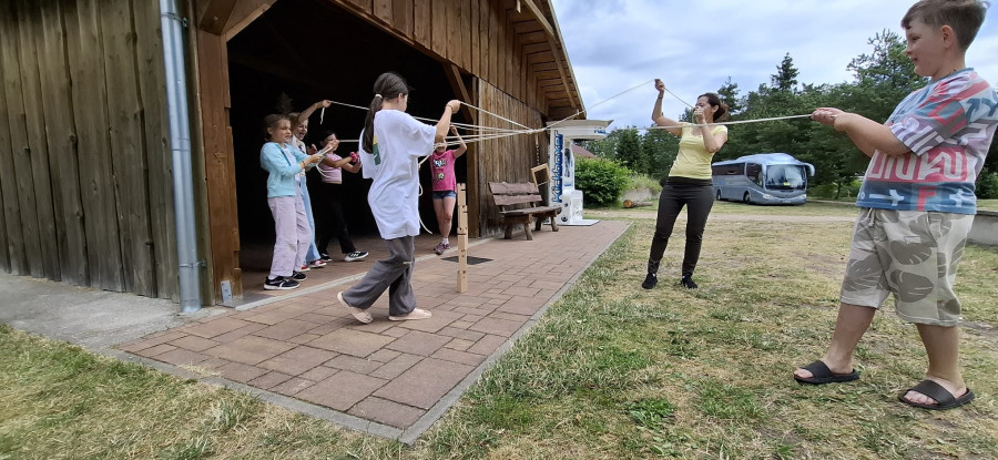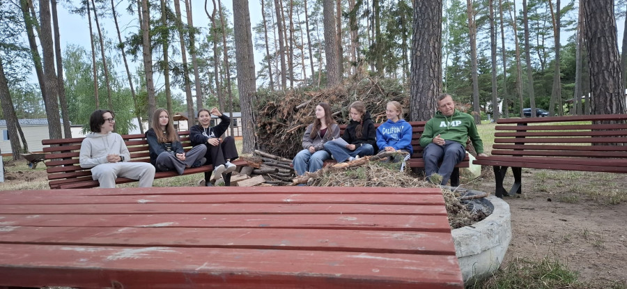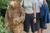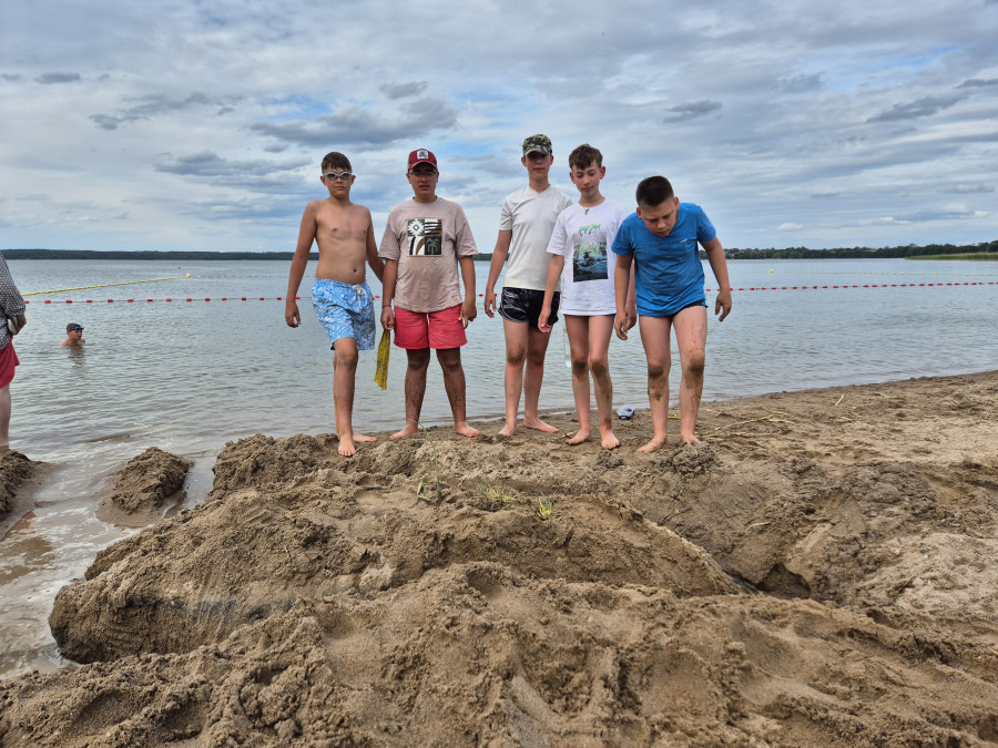 Podzieliliśmy się na 2 grupy: w czasie gdy starszych pan Józef wprowadzał tajniki rzeźbiarstwa, młodsi mieli gry na powietrzu w ośrodku ( pilka nozna, gry w kregle fińskie, wieża Ferbla...) i na zmianę.