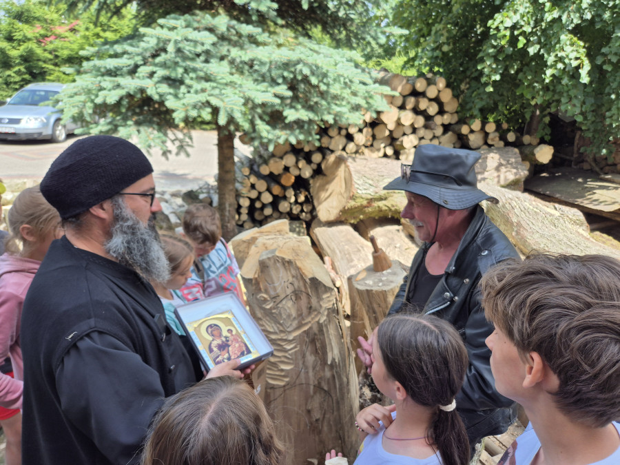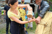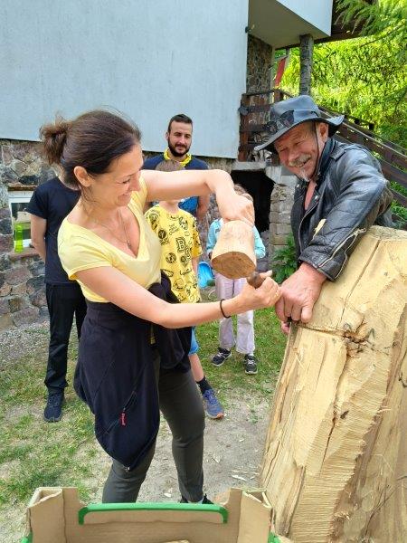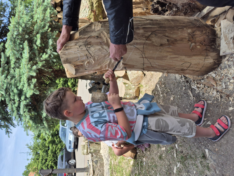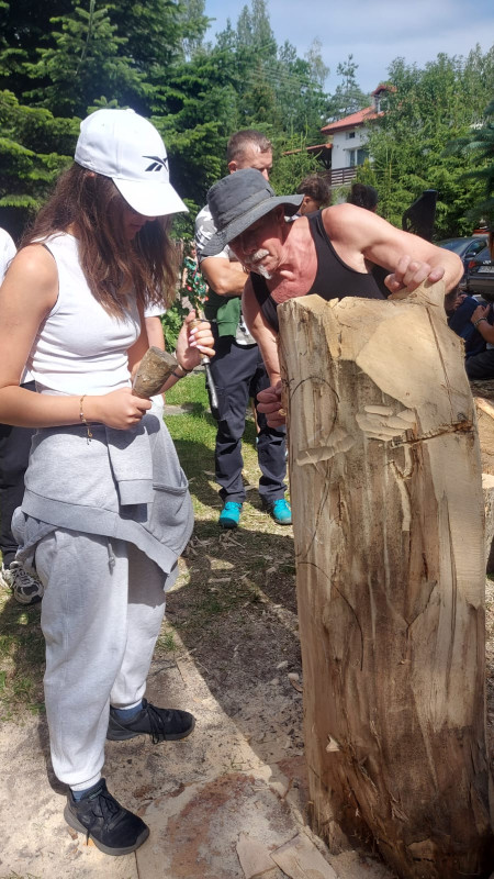 Każdy mogł dotknąć dłuto i pobijak, wzięliśmy sobie po małym kawałku drzewa lipowego na szczęście w miłości i nauce ;-)