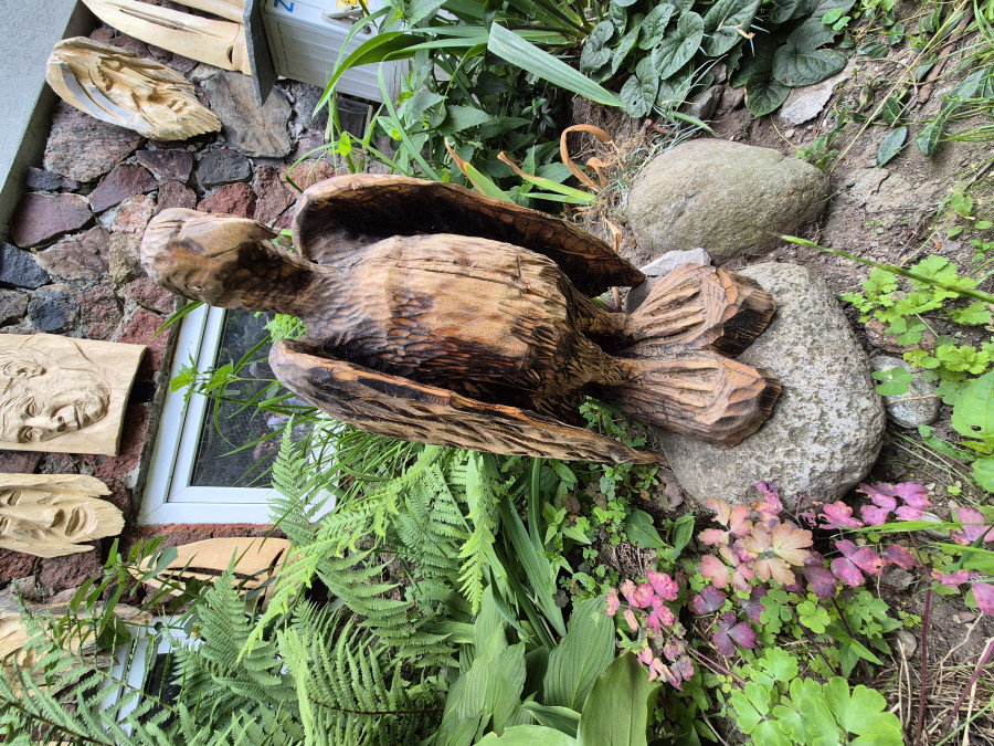 Po obfitym i jak zawsze bardzo urozmaiconym śniadaniu udaliśmy się do pana Józefa Niewińskiego - miejscowego artysty rzeźbiarza w Kruklankach.