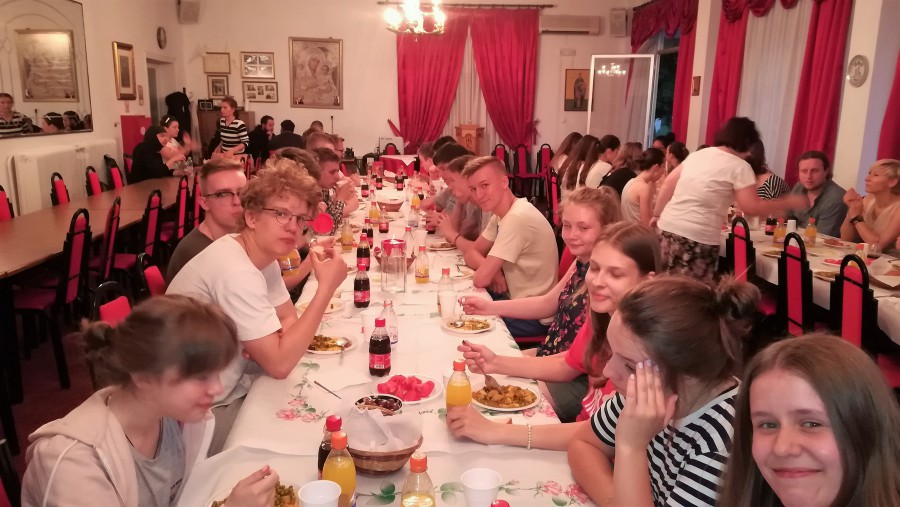 I oto jesteśmy! Za nami dwa dni podróży komfortowym autokarem przez całą Europę, swego rodzaju Północ-Południe. Droga do upragnionej Grecji dla młodych pielgrzymów z Warszawskiej parafii św. Jana Klimaka oraz przyjaciół z Białegostoku, Krakowa, Wrocławia, Gładyszowa, oraz Rosji rozpoczęła się w nocy z niedzieli na poniedziałek. Malownicze krajobrazy Słowacji, Węgier oraz pięknej Serbii przepływające za oknem umilały nam czas. Bliżej wieczoru dotarliśmy do miasta Nowy Sad, gdzie czekała na nas kolacja w miejscowej restauracji, lekki spacer wybrzeżem modrego Dunaju, z widokiem na starodawną twierdzę, i, wreszcie, odpoczynek w przytulnym hostelu. Wieczorne modlitwy stały się finałowym akordem tego dnia. Wtorkowy poranek rozpoczął się dla nas o bardzo wczesnej porze szybkim śniadaniem ze względu na odległość, którą jeszcze zamierzaliśmy pokonać. Bogata przyroda południowej Serbii oraz Macedonii wprawiają w zachwyt nawet przy tak przelotnej znajomości, którą może zapewnić jazda autokarem po asfaltowej wstędze autostrady. Gdy przekroczyliśmy granicę Grecji powitały nas piękne kwitnące oleandry, towarzyszące nam od tego momentu do samego miasta Katerini, które stanowiło cel naszej wędrówki. Jesteśmy niezmiernie wdzięczni O. Pawłowi Samolukowi, który spotkał nas w drodze do Katerini i odprowadził do Diecezjalnego Ośrodku Wypoczynkowego, z okien którego rozpościera się widok na legendarny Olimp. Ośrodek – to okazała budowla o śródziemnomorskiej urodzie, mieszcząca się obok cerkwi oraz budynku, w którym mieści się trapieznaja oraz kilka innych pomieszczeń, gdzie czekała na nas kolacja. Dzisiejszy wieczór podsumowała wizyta Jego Ekscelencji Najprzewielebniejszego Jerzego, Metropolity Kitros i Katerini, który przybył, aby osobiście powitać pierwszą w historii ośrodka grupę z Polski. Jego Ekscelencja zapewnił nas, iż jego gorącym pragnieniem jest, aby każdy z uczestników naszego obozu wracając do domu zabrał ze sobą bagaż satysfakcji z wypoczynku i duchowych wrażeń. Wyraziliśmy swoją wdzięczność Jego Ekscelencji za tak gościnne przyjęcie w tak wspaniałym miejscu. Rozlokowani na jednym piętrze w przestronnych pokojach, po wieczornych modlitwach, oraz spotkaniu z o. Pawłem, który nakreślił wspaniały obraz czekających na nas atrakcji, udajemy się do snu. Pozdrawiamy wszystkich naszych bliskich! Jutro – witaj plaża, witaj ciepłe morze!